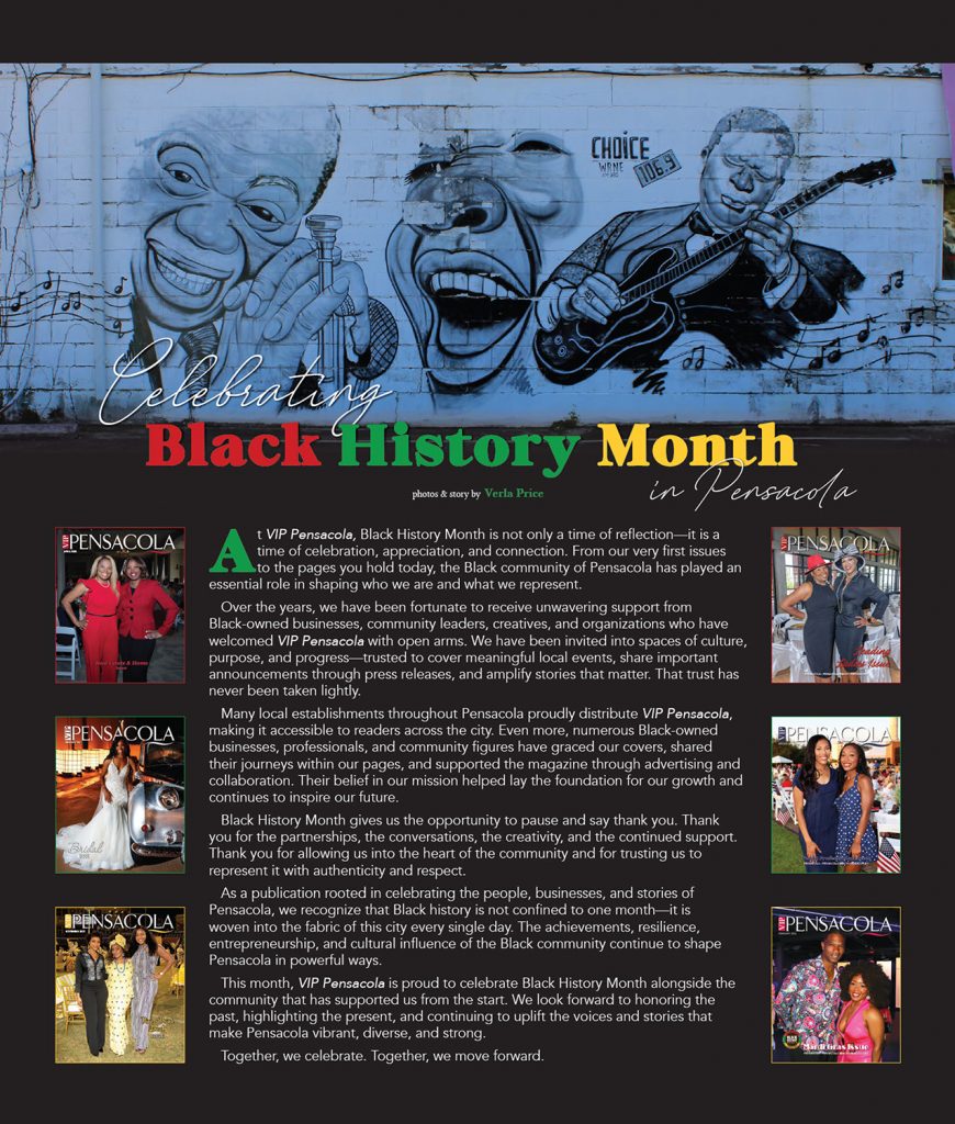 Celebrating Black History Month in Pensacola 0 By vipmagazine_admin on February 6, 2026 Features, VIP Features, VIP Features2 Share. Twitter Facebook Google+ Pinterest LinkedIn Tumblr Email